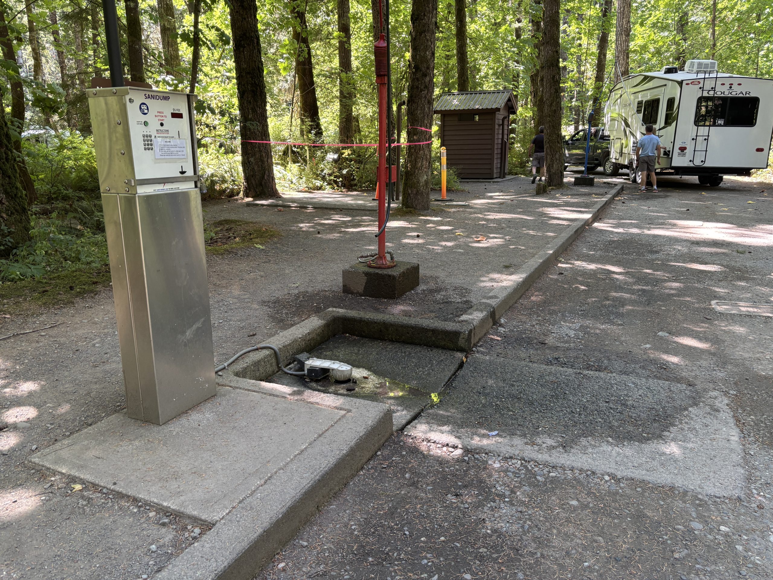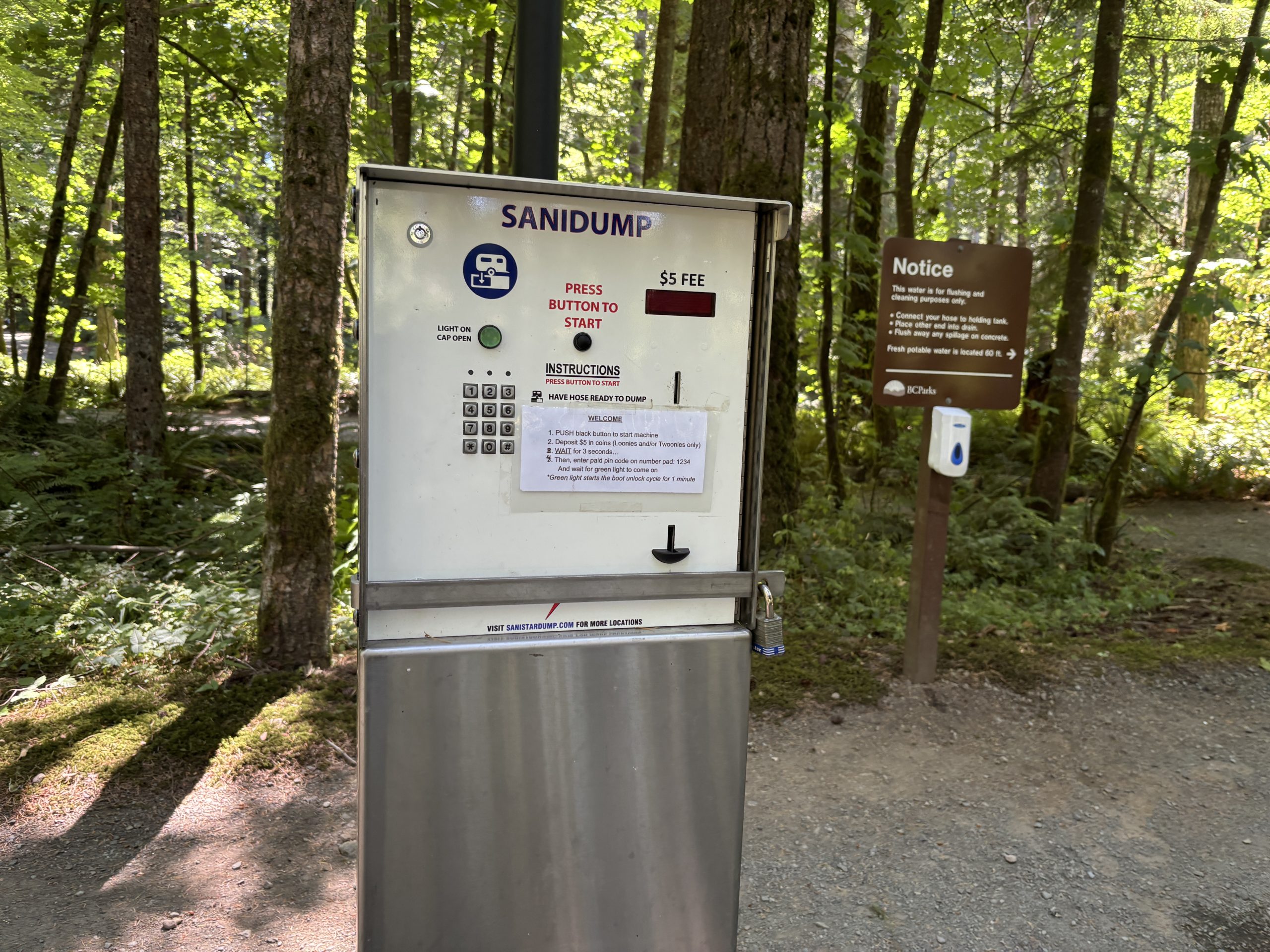 There is a $5 fee to use the dump station. Charging for trailer waste dumping is common in BC Parks. We encountered the same setup at Shuswap Provincial Park on the mainland. Elk Falls Provincial ParkPotable water is available free of charge.