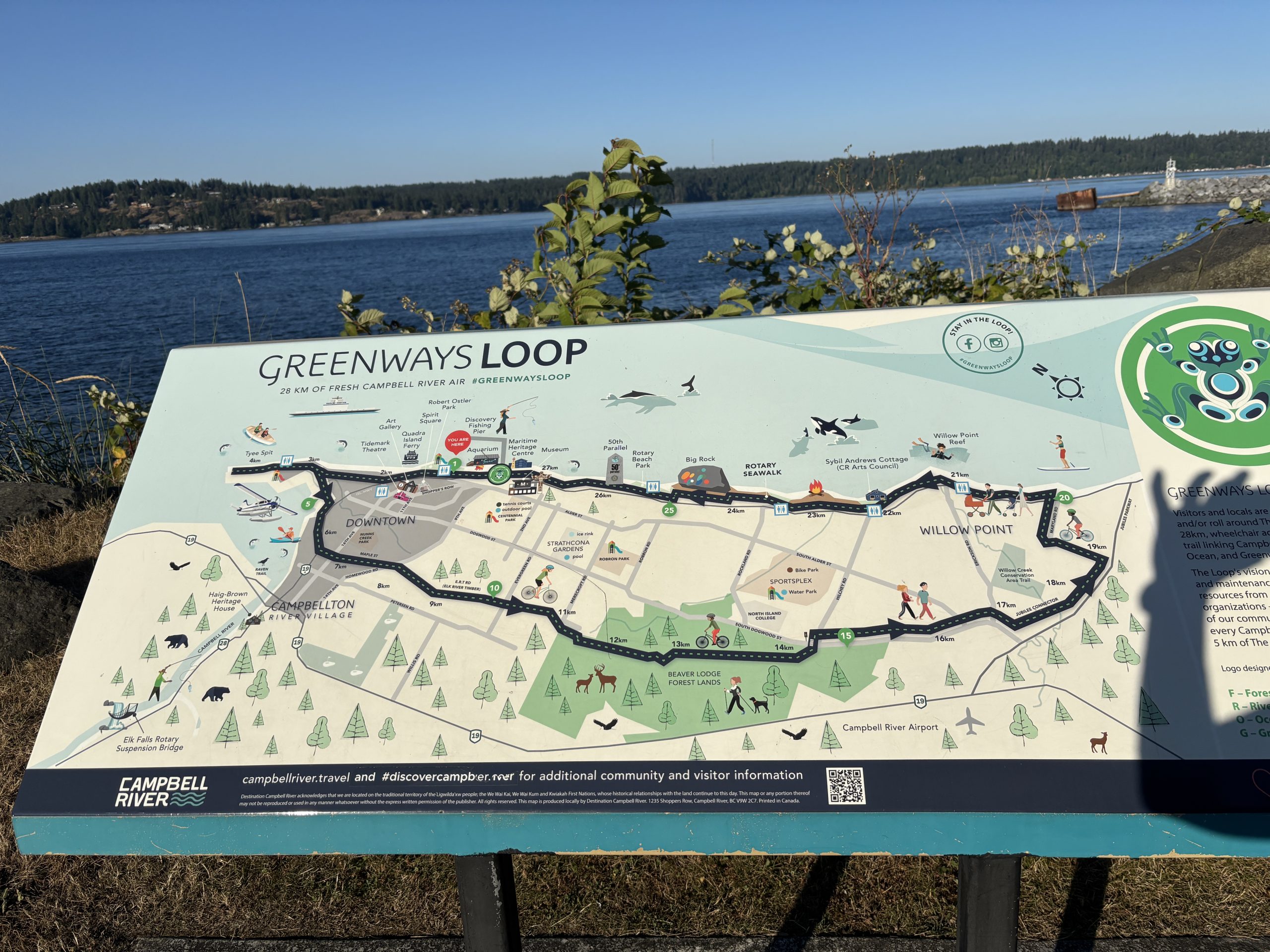 You can ride your bike on the campground roads, but the park does not allow bikes on the trails. It’s a short ride into Campbell River along Highway 28, and while there is a paved shoulder, large transport and logging trucks frequently use this route. For that reason, I wouldn’t recommend it as a family-friendly ride into town.