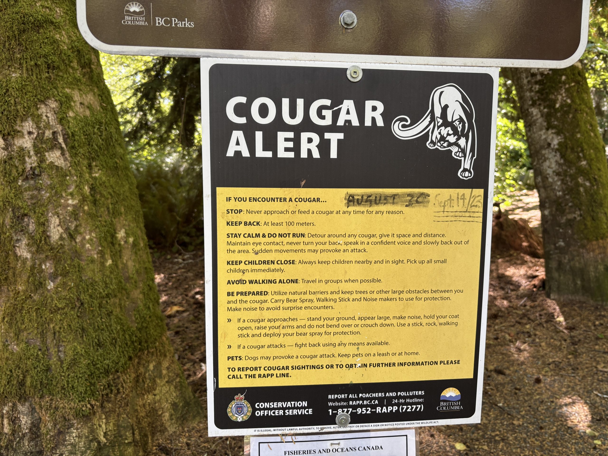 8. Cougars also roam the area. An estimated 600 to 800 cougars live on Vancouver Island, giving it the highest cougar density in North America. While cougars tend to avoid people, you should stay alert—especially when hiking in forested areas.Elk Falls Provincial park