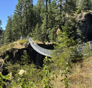 The park added the suspension bridge in 2015 to mark its 75th anniversary. It stands 64 metres above the river and is the highest suspension bridge on Vancouver Island. Elk Falls Provincial ParkElk Falls Provincial ParkIf you’re hiking with a dog, be aware that the stairs and bridge are made of a bumpy steel grid with holes. Many dogs are uncomfortable walking on this surface. I have a Cocker Spaniel and wouldn’t have him attempt it. When we visited, my husband waited at the top of the stairs with our dog while I went down to the lookout, and then we switched. Murphy (my dog) didn’t see the falls, but he did enjoy the rest before we continued our hike.