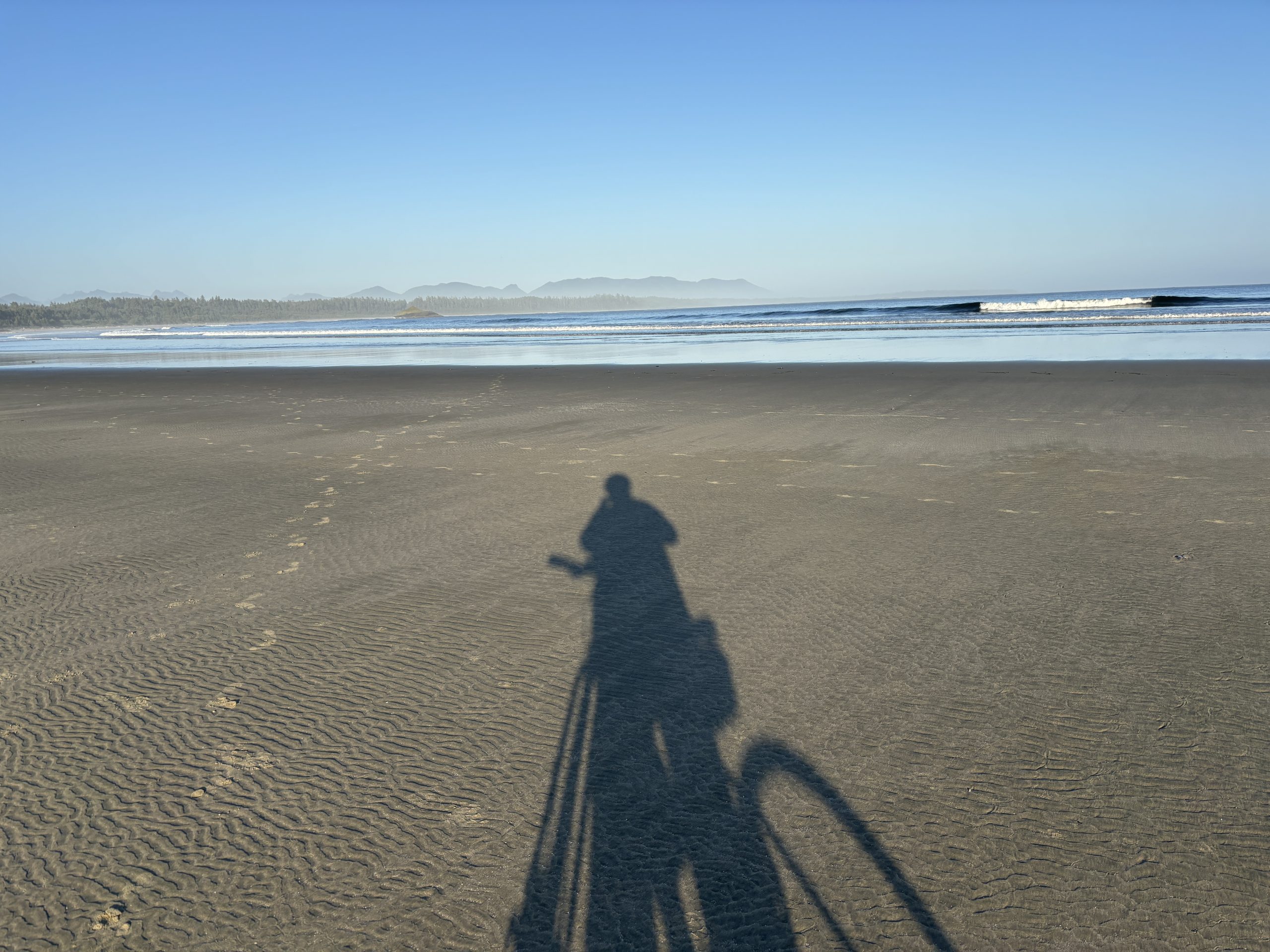 There are several kilometres of sand beach along the shore edge of Pacific Rim. There are parking lots at many of the trail heads that link to the beach.